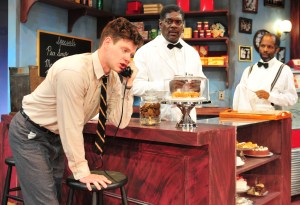 A teenage white boy quietly enters as Sam is demonstrating the proper dance technique while Willie sings the tune. (Neither can afford to play the juke box.) When Harold, the shop owner’s son, makes his presence known, both black men affect a more businesslike demeanor. But it’s clear that “Hally” (played by Peter Mark Kendall) is not there to chastise Sam and Willie, having a warm and affectionate relationship with these men he has known his entire life.
