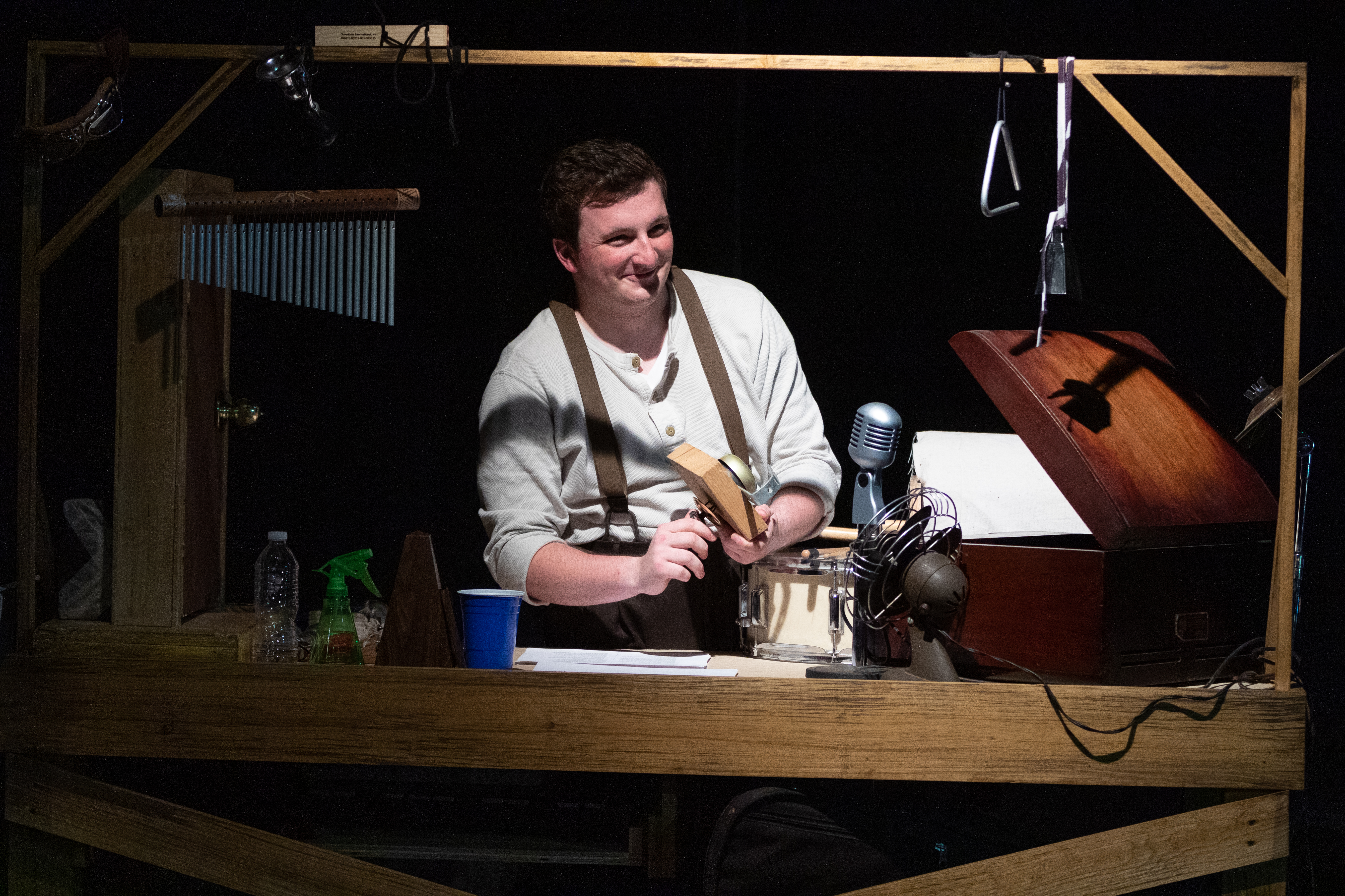 Although the play includes every scene and most of the dialog from the 1935 film, the actors ham it up for comedic effect and comic/dramatic scenes are highlighted by Foley artist Malachi Rosen’s on-stage musical and theatrical sound effects.